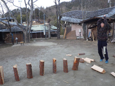 登り窯の準備と言えば薪作業もあります。秋に取ってきた薪を今度はどんどん割る作業をします。3年目中学3年生のKは薪の列を作りどんどん割っていきます。さすが!頼りになる!