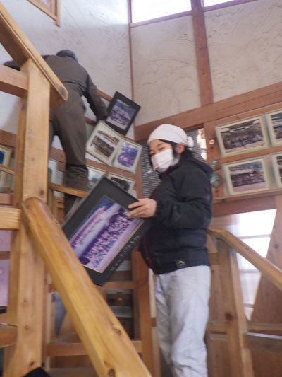 歴代の写真にもほこりがかぶっています。一つ一つきれいにして、37年目のだいだらぼっちの締めくくります。