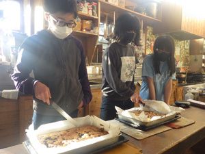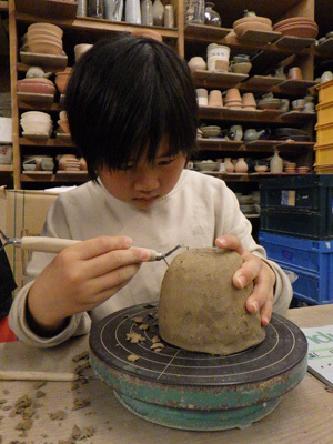 すみれはお茶碗の釉がけをしています。釉の原料は木を燃やして出た灰です。木の種類によって、出来上がりの色が異なり作品の雰囲気を決める大切な作業です。これから大切に使い続けるお茶碗だからこそ、どの灰を選ぶかは肝心。どんな風に仕上がるか楽しみだね。