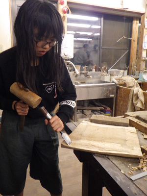 ピコは昨年度から大きな木の角皿づくりに取り組んでいます。ものづくりにおいて“綺麗さ”を大切にしているピコは、表面の木目が際立つよう丁寧に削っていきます。