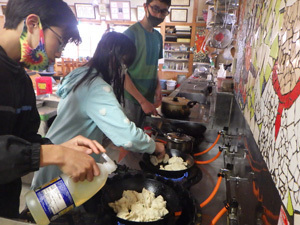 今日の朝ご飯はなんと餃子です!朝5時半からひたすら皮をつくり、あんを包み、餃子をひたすら焼いていきます。完成の時間を目指し、声を互いにかけ合いながらご飯隊ひとりひとりが全力で手を動かしました!