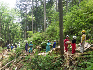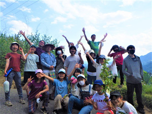 村の元学有林で薪作業をしました!森の奥の方にある薪を持って帰るため、みんなで長~い列をつくりリレーで運びました。ひとりひとりの力は小さくても、みんなが手を動かせば作業はどんどん進みます!