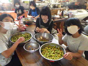 いただいた梅は梅ジュースにします。美味しいジュースにするためには「新鮮なうちにやるのが肝心!」と早速仕込みはじめるところがさすがです!