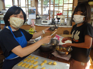 こちらはちんすこう作りです!仲っちは「みんな喜ぶかな!」とこだわりのちんすこうを張り切ってつくりました。みんなの「美味しい!」という声にとても嬉しそうな仲っちでした!