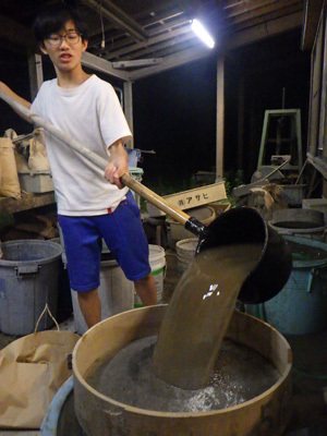 Kは学校の先生から頂いた灰でオリジナル釉薬づくりに挑戦中です。水簸(すいひ)を繰り返し、余分な石やゴミを取り除きます。時間と手間のかかる作業ですが「完成までどうなるかが分からないないから面白い!」と手を動かすKでした。