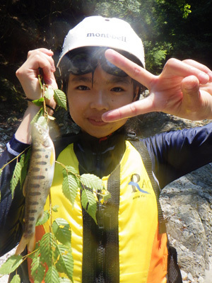 今一番こどもたちが夢中なのは魚つかみです。 ピコは立派なアマゴをゲット!魚の感触が新鮮で、捕れた時の達成感が大きくて益々夢中になるこどもたちです。