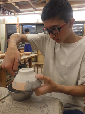 素焼きを終えた作品に釉薬をかけています。ニコルは器に2種類の釉薬をかけることにチャレンジしました。こどもの豊かな発想で新たな作品が生まれます!