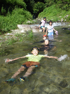田んぼの様子を見に行った後、すぐ横を流れる清流左京川で遊びました。9月だけどまだまだ暑いので冷たい川の水が気持ちいい!