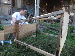 ニコルが作っているのは、ニワトリを繁殖させるために、卵を抱く場所、抱卵箱です。