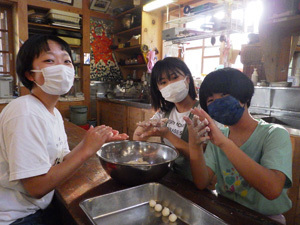 9月10日、今日は満月です。お月見を計画しているみー、なっちゃん、ふーみんがお月見団子をつくっています。