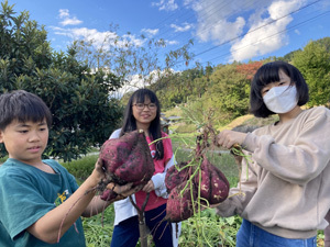 今年度は砂を入れたり、たい肥を入れたりと土改良に力を入れて育てていたので、みんな大喜び!スイートポテトに、焼き芋、大学芋…食べたいメニューがどんどん浮かんできます。