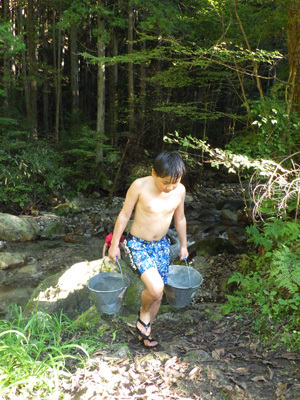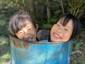 もちろんキャンプに遊びは欠かせません!らーらはある“やりたいこと”のために、せっせと川から水を運んでいます。一体何のために?