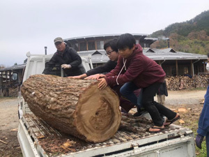 自分たちで山から木を出すこともあれば、村の方からいただくこともあります。今回は1本運ぶので1トントラックが一杯になるほど大きな丸太をいただきました。薪の暮らしをしていると村の方に支えられていることを肌で感じます。