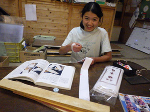 まなみの藍染しぼりの浴衣づくりがはじまりました!まずは自分が思い描く模様に沿って縫っています。完成に向けてひとつひとつの過程を丁寧に進めていきます。