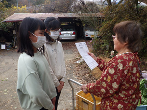 だいだらぼっち祭りには、普段お世話になっている村の方たちもお招きします。祭りの詳細を書いた手作りの招待状を、直接会って渡したい!とお家を回りに行きました。