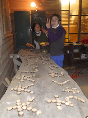 あだっちーとふーみんは、だいだらぼっち祭りの受付に飾るウェルカムボードを作りました。切った木を並べて、文字を書きだすのは時間がかかりましたが達成感は大きいです!