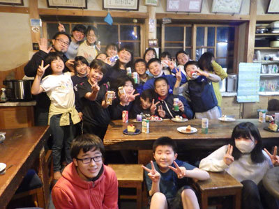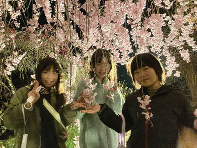 こちらも春のお楽しみ“お花見”です。お世話になっている村の方のご自宅で夜桜を見ました。見上げる限り広がる大きなしだれ桜に「こんな大きな桜初めて!」と感激するこどもたちでした。