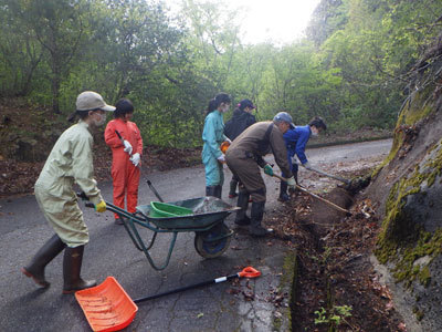 『道路愛護』という村の清掃活動に参加しました。朝8時半から集合し、村の方々と一緒に道路端の落ち葉をかき出す作業を行いました。汗ばむ陽気の中、みんな一生懸命作業していました。