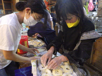 作業から帰ってくると、一休みすることなくドーナツ作りを始めたこどもたち。みんなの喜ぶ顔を見たい!そんな想いで、全員分のドーナツを作り上げました。
