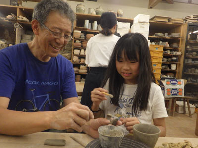 教室では1年目のメンバーがマグカップ作りです。お茶碗に続いて二つ目のマイ食器完成を目指します。
