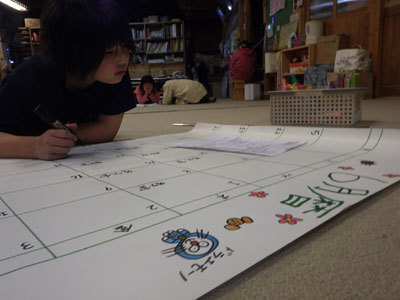 6月のスケジュールを決める話し合い「6月暦」に向けて、準備中です。暮らしにかかわる作業などやらなければいけないこと、自分たちのやりたいことを具体的に見通すために、月暦はとても重要です。