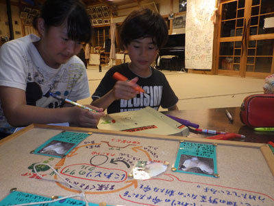 トリシアとアキトはニワトリの飼育状況などやなぜニワトリを飼っているのかなどをニワトリノートに書きこんでいます。同じ失敗を繰り返さないように、しっかり記録します。