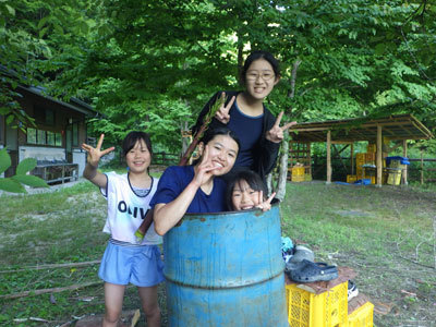 川遊びの前から焚いていたドラム缶風呂が焚きあがりました。順番に入ってあったまりました。