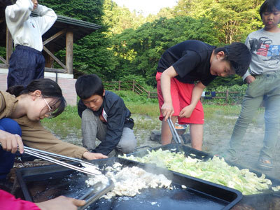 夜ご飯はバーベキュー。毎日お風呂焚きをしていることもあって火を起こすのはお手の物です。