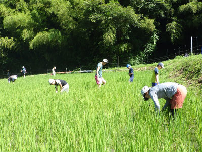 休日の午前中に田んぼ作業へ出かけました。7月の熱い時間の作業でいたが、秋の豊作を目指して、丁寧に雑草を取っていきます。