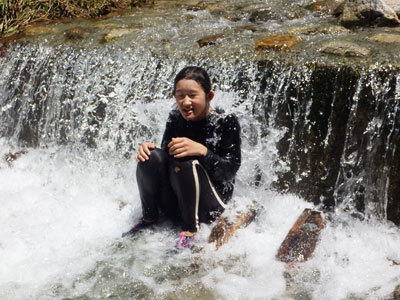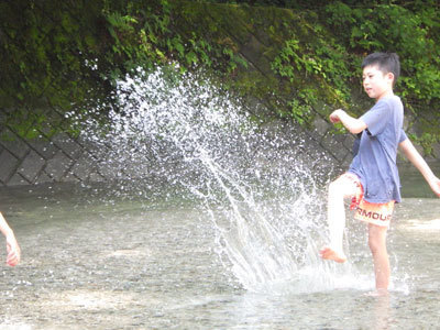 田んぼ作業のあとは近くの左京川で水浴びです。作業の後の川の水は格別に気持ちいいのです。