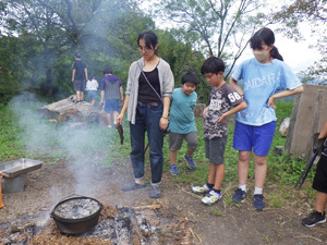 むぎちゃが夕ご飯で燻製をしています。なんと桜の木でお皿をつくっている時に出た桜の木の削りカスで燻製をしているのです!だいだらぼっちではものづくりもごはんづくりも暮らしを形づくる要素です。