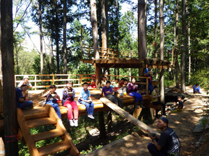 この日は風呂薪を得るために森にやってきました。まずは腹ごしらえにお昼ごはんを食べました。気持ちいい森の空気の中食べるごはんは絶品です!