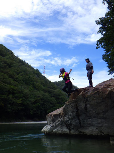 川の途中の大岩、通称「ライオンキングの大岩」から飛び込みをしました。今年度初めての天竜川は天気にも恵まれ大自然を堪能しました。