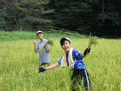 田んぼ作業に出かけました。稲も育っていますが、雑草もとても良く育っています。稲穂を落とさないように慎重に雑草だけ取り除きます。10月の稲刈を想像しながら、作業を頑張りました。