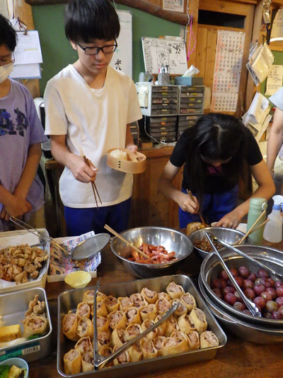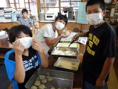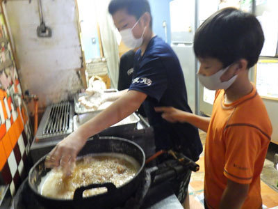 この日は朝からたくさんのからあげをあげました!実は中学生が学校の文化祭だったので応援するために小学生がメニュー盛り沢山のお弁当をつくったのです!さあ、おいしくできるかな?