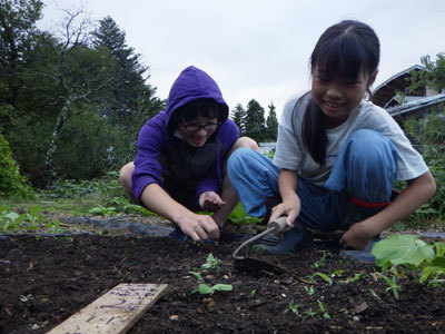 今年度は冬野菜にもチャレンジします。あだっちーとゆいは種から育てた苗を畑に植え付けました。