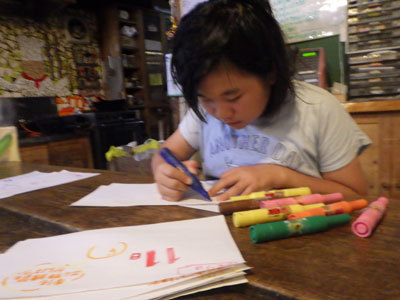 だいだらぼっち祭り当日までのカウントダウンカレンダーを作っているちょこ。初めてのまとめ役で忙しく作業しています。