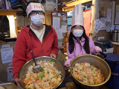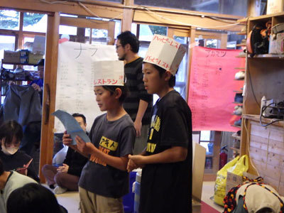 食事前のインフォメーションで、メニューとともに村の方からいただいた食材を紹介しました。村の方々に支えていただいているということを参加者にも知ってもらいたいという想いで伝えています。