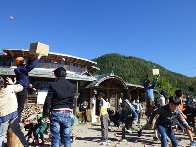 祭り2日目のレクでは『だいだらぼっち運動会』を開催!“こどもから大人までみんなが楽しめる”ということを大切に、レク係が一生懸命考えました。玉入れではこども・OBOG・スタッフ・保護者がごちゃまぜになって楽しみました。