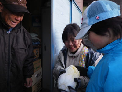「畑の野菜取りおいで」と村の方からお声がけいただきました。仲っちゃんと竹輪丸は何度も足を運んでいるので、すっかり仲良しです!お喋りが弾みました。