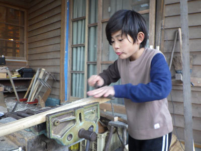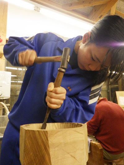 「あ、わかった。」4年目のむぎちゃは木肌をよく見て、どの角度で削るのがいいのか感じ・考えながら削り進めています。誰かに言われてではなく、これまでの経験値から自分で気づくのです。