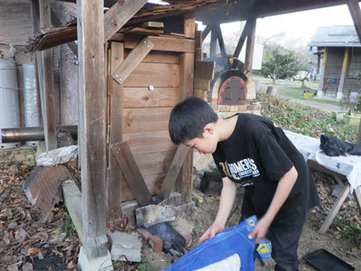 「あと、もうちょっと!!」と、意気込みながらアキトは斧直しをやっています。この“もうちょっと”が斧の精度を左右するので、気合いが入るのです。