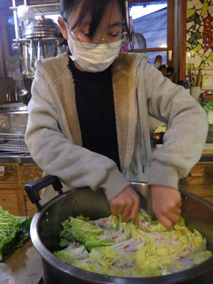 寒い日が続き体があたたまるお鍋が食べたい季節になりました。この日は畑で採れた大きな白菜でかりんがミルフィーユ鍋を作ってくれました。「自分たちで育てた白菜だからきっと特別おいしい!」と期待が膨らみます。