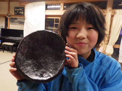 コツコツと削っていた木皿に漆を塗り重ねてついに完成です!「塗るたびに色が濃くなっていったり艶がでたりするのがおもしろい!」と漆の魅力を発見しました。