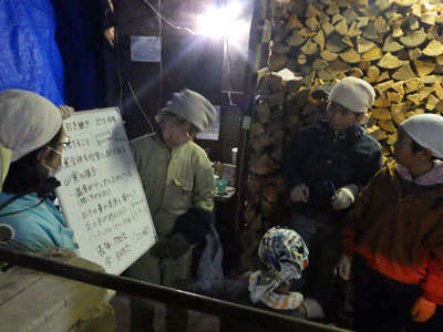 当番を交代する時には次のチームへの引継ぎがおこなわれます。自分たちが何を考えて焚いていたのか、何をしたのかなどを引き継ぎ、みんなで一つのゴールに向かって焚き続けます。