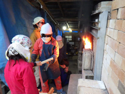 窯焚きに欠かせないのは常に“考える”こと。窯の中の状態を見て、「右側の薪が少ないよ」「じゃあ次は数を増やしてみよう!」と薪をくべる量や位置もこどもたちで相談しながら焚いています。