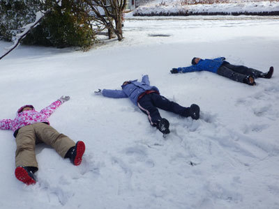 すみれ、ゆい、まきは定番の人型をつけてみたり、雪合戦をしたりと一日楽しみました。