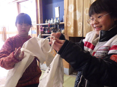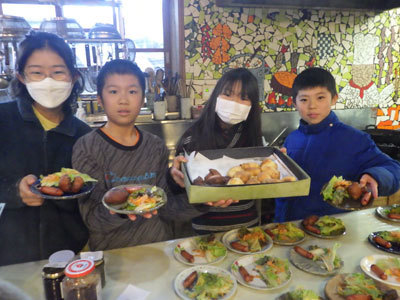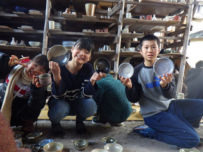 登り窯の窯出しが終わり、こどもたちが使えるように焼き物が整えられました。早速この日から使い始めます。