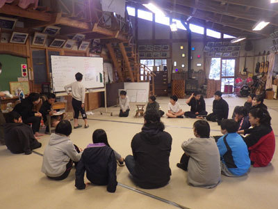だいだらぼっちはこどもたちが暮らしをつくっていく場です。ですが何も決まっていないので、まずは、「ご飯をつくる人をどうやって決めるか?」などの暮らしの話し合いをしました。「みんなが気持ちよく暮らすためにどうしよう?」と頭をひねって考えるこどもたちです。