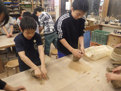 ものづくり教室が本格的にスタートしました。1年目のメンバーはまずは焼き物の基本の練りの練習です。